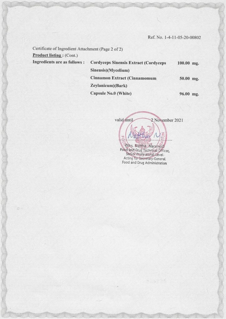 สารสกัดจากถั่งเช่า (Cordyceps Sinensis Extract) 100 มก.